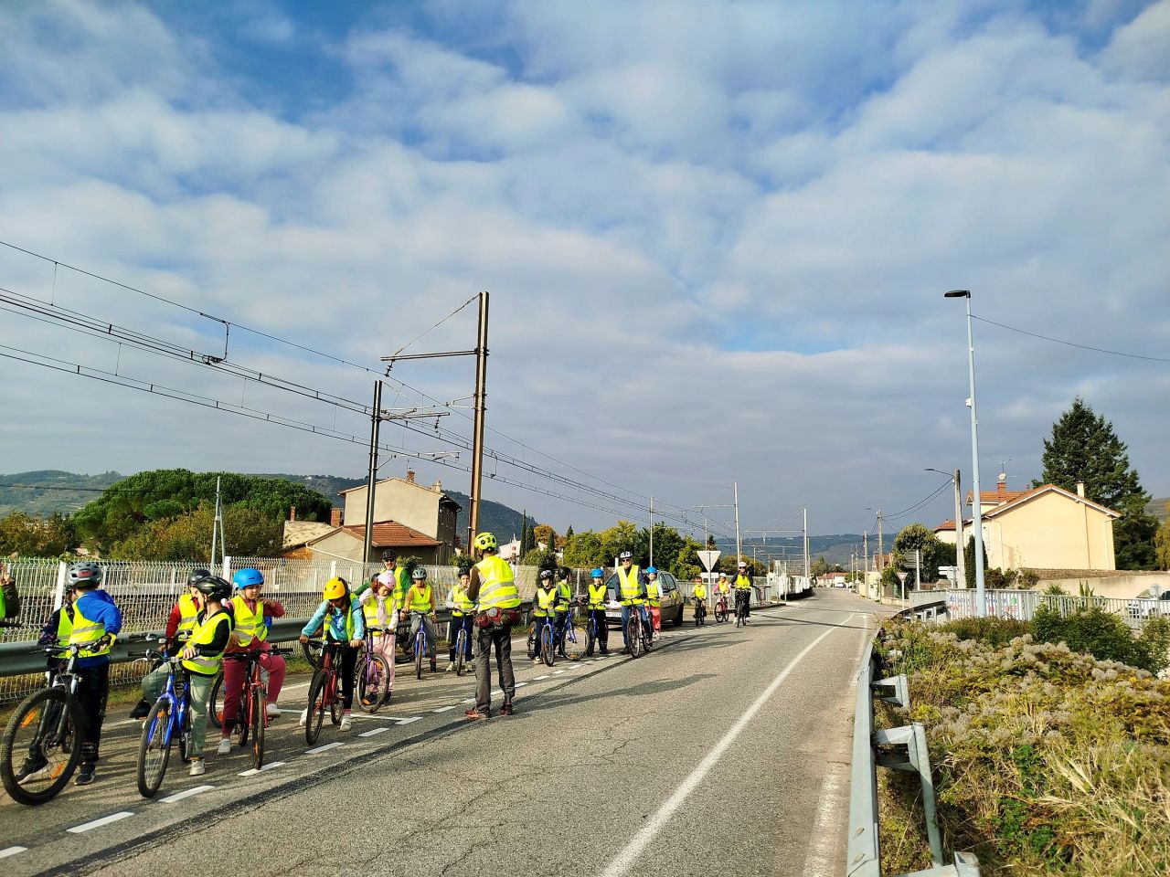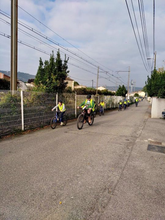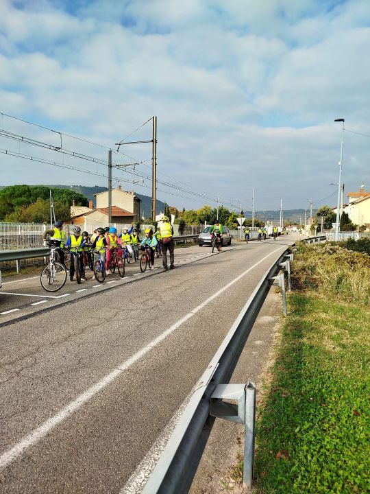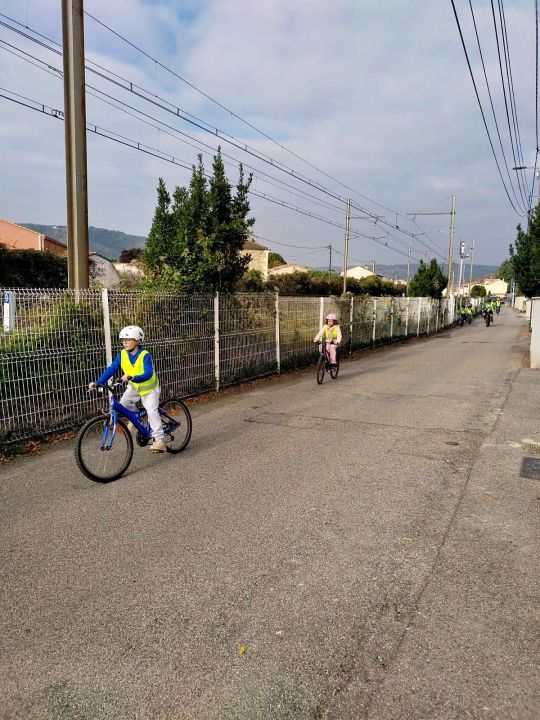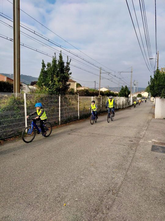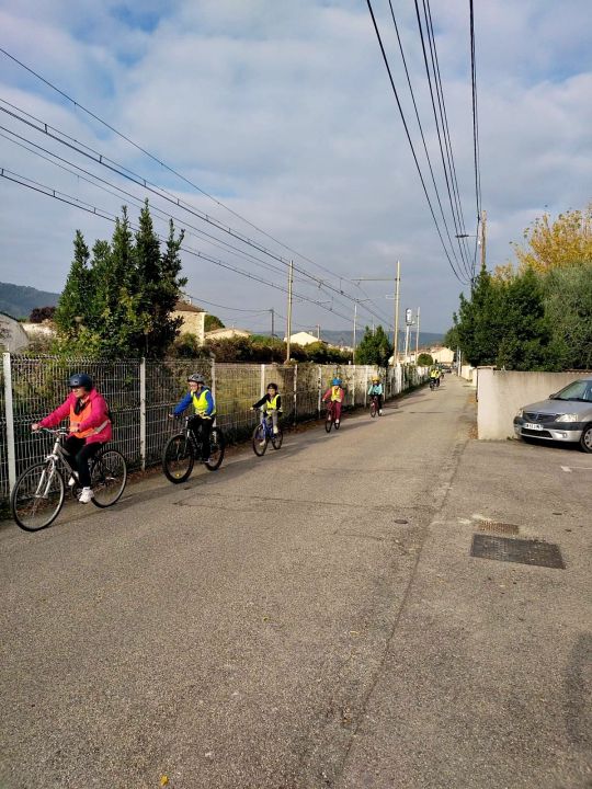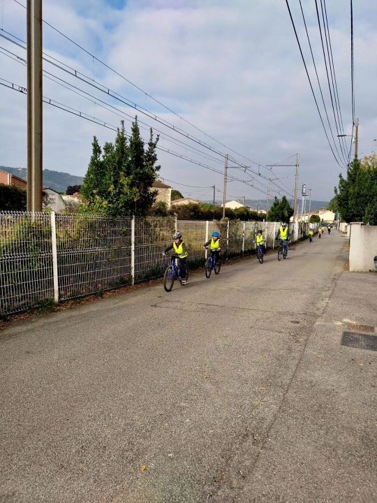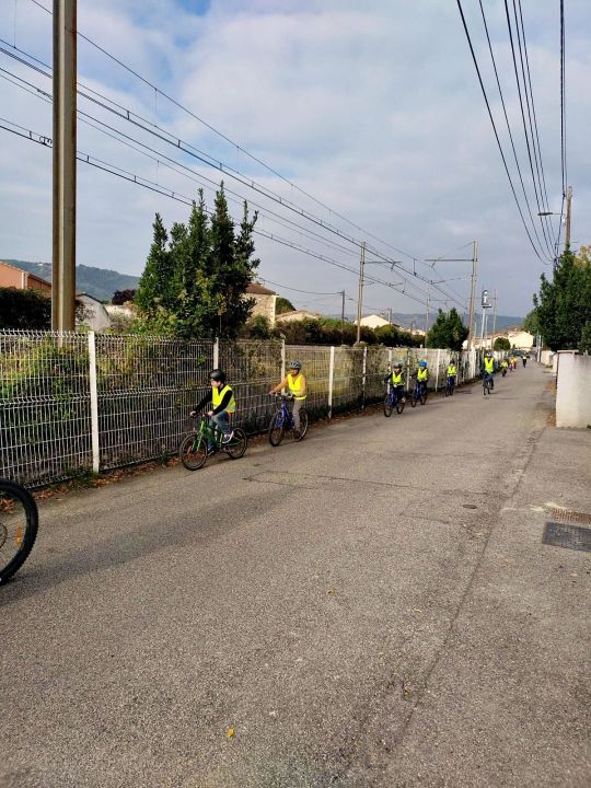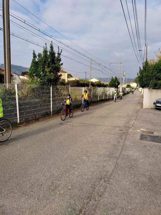 Vendredi 17 octobre matin, les élèves de la classe de Mme Defours se sont préparés pour effectuer une sortie vélo dans Tain. Ils avaient bénéficié de plusieurs séances en amont avec lenaic. La sortie s'est très bien passée, les élèves étant très respectueux des règles de conduite. Après avoir traversé le parc de la Teppe, emprunté la piste cyclable le long du Rhône en passant devant la piscine puis vers notre école , la poste, traversé la place taurobole, ils sont revenus...