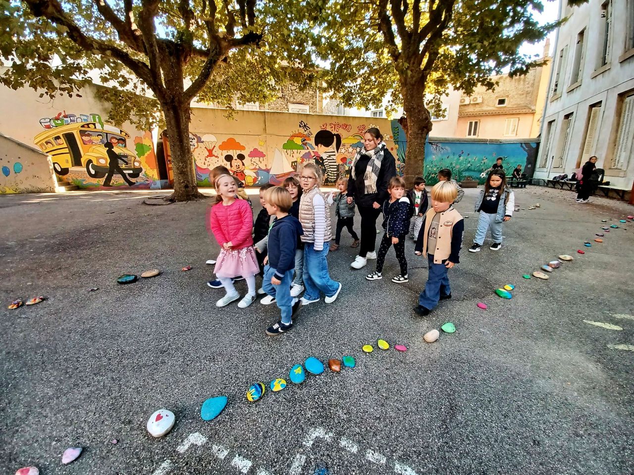 Mardi 7 octobre a eu lieu le lancement de notre année en culture humaniste et catéchèse. Tous les enfants de l'école ont participé à ce moment convivial à 15H30 avec un temps d'échanges en salle de motricité, puis dans la cour de l'école. Tous les enfants avaient décoré un galet qu'ils ont déposé dans la cour pour créer un chemin commun symbolisant l'aventure commune que nous allons vivre toute cette année. Le père Damien de Villepoix était présent et a pu bénir les cartables...