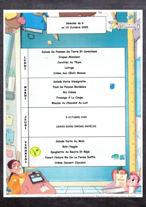 Le menu de cette année a été imaginé par Maxime Szczepaniak, chef du restaurant Mandibule à Alixan et parrain de l'édition 2025.
