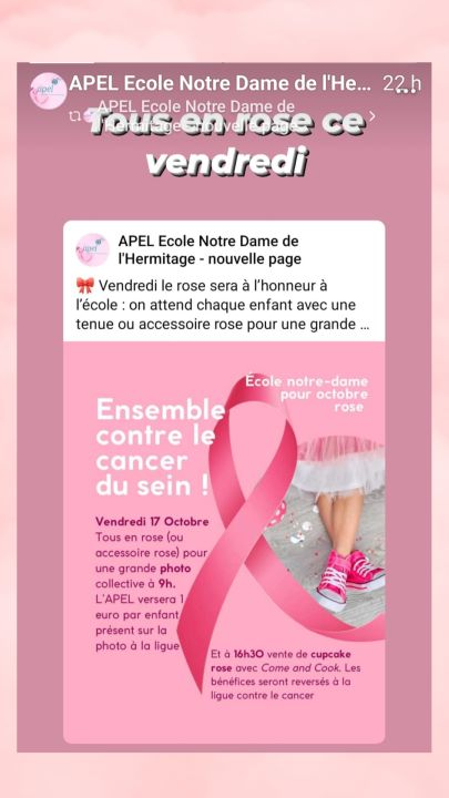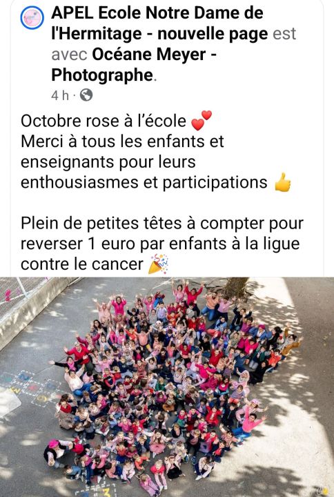 Nous invitons tous les enfants à venir habillés avec une touche de rose ce vendredi 17 octobre 2025 pour une grande photo collective